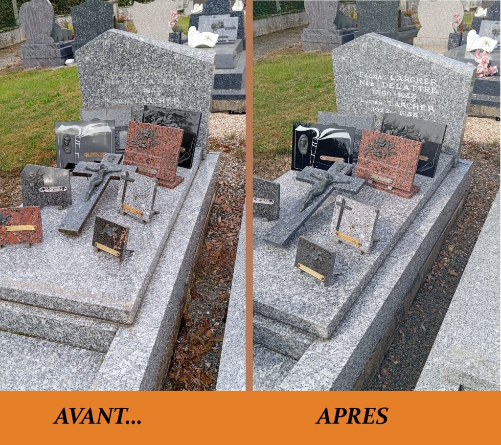- nettoyage des surfaces (stèle, tombale, contours)